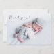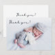 Simple Modern Handwritten Script Photo Newborn Baby Thank You Birth Announcement Card. Features a beautiful "thank you" text in a calligraphy font photo overlay script. Pre-made personal message at the back side in black and white. Gender neutral, great for baby girl or baby boy. Easy to personalize with your baby photo and details.