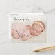 Simple Modern Script Newborn Baby Photo Thank You Postcard. Features a beautiful "thank you" text in a hand lettered calligraphy or typography font photo overlay script. At the reverse side pre-made personal message in black and white. Easy to personalize with your favourite baby photo and details.