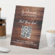 Handwritten script QR code rustic wedding seating Pedestal Sign