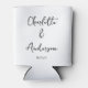 Handwritten Script Whimsical White Custom Wedding Can Cooler