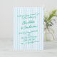 This wedding invitation features soft blue vertical stripes paired with modern handwritten script in green for a fresh, timeless look. The clean layout feels preppy yet relaxed, perfect for vineyard, coastal, or classic weddings. Names, date, location, and RSVP details are fully customizable to fit your celebration. A simple, stylish option for couples who love effortless elegance with a personal touch.