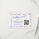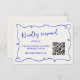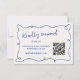 Quirky and fun wedding RSVP cards with a qr code. This response card features a cobalt blue coloured hand drawn squiggle frame on an ecru background.