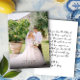 Thank you card with wedding photo and handwritten style typography. The design features a full bleed vertical photo on the front and your 'handwritten' message on the back. Simple modern design in black and white and super easy to customize the background colour, and/or the text, if you wish to match your wedding colour palette. Please browse my Wedding Photo Thank You Card collection for alternative designs.