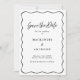 Set the tone for your celebration with this effortlessly chic black-and-white Save the Date card, designed for couples who love simplicity with a twist. A playful wavy squiggle frame surrounds the handwritten “Save the Date” script, adding warmth and personality to a clean white backdrop.