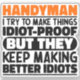 Funny Handyman Sayings "Handyman I Try To Make Things Idiot Proof But They Keep Making Better Idiots". Grab this Funny Handyman design as a funny gifts for an awesome mom, dad or friend.