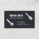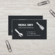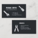 A business card with silhouettes icons of useful handyman tools which include screwdriver, spanner and wire cutter. Classy black and white colour palette. Personalize with your business information in the text templates provided.