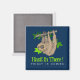 A cute drawing of a brown sloth clinging to a branch with leaves and hanging upside down. Written underneath it says hang in there, friday is coming.