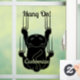 Black cat dragging claws down the wall hanging on for dear life to customize, to personalize by changing to your name on any background colour