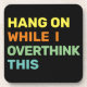 "Hang On While I Overthink This" bright pastel text on a black background.