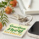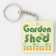 Le porte - clé spécifiquement pour maintenir votre jardin a jeté des clés avec le lettrage peint de mosaïque de jardin, décoré des fleurs et d'une boîte d'arrosage avec un arrière - plan pâle de citron.