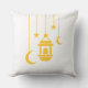 Celebrate the spirit of Ramadan with this charming pillow design featuring golden hanging elements—crescent moons, stars, and a traditional lantern. Symmetrical and serene, this minimalist accent brings warmth, joy, and cultural elegance to prayer spaces, cozy corners, or festive gatherings.