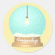 Hanging lightbulb snow globe blue yellow unique classic round sticker