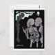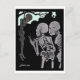 Hanging Skeleton postcard : this vintage death art is by Gustave Henri Jossot circa 1904 it depicts two comical cartoon skeletons looking at a third skeleton hung in a tree. the art is black and white except for the skeletons being drawn in shades of grey. the blue sky can be seen thru the tree branches. It should be noted that This image/work is in the public domain because their copyright has expired. This applies to the United States, where Works published prior to 1923 are copyright protected for a maximum of 75 years. See Circular 1 "COPYRIGHT BASICS" PDF from the U.S. Copyright Office. Works published before 1923 (in this case 1904) are now in the public domain.