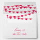 These elegant envelopes are perfect for adding a touch of glam to your mail. The design features hanging pink string love hearts with easy to personalize template return name and address wording. This design matches the "Hanging String Love Hearts" bridal shower collections but you can use these envelopes for all your mailing needs. View the collections for matching items.