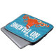 The sleeve is made of nice feeling material and seems very durable. I'm not sure how easy it'll be to clean, but the construction seems sound and the fabric is quick thick. I also like the double zipper. The printing is lovely and appears durable. The white on black contrast is nice, and the design very elegant.