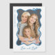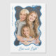 Ces adorables cartes Hanoukka magnétiques présentent votre photo préférée dans un cadre branché bleu ondulé avec un arc lunatique, sur un simple arrière - plan blanc. Le script moderne dit "Amour et Lumière".