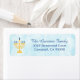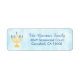 Un design simple d'une menorah dorée tenant des bougies bleu foncé et clair. L'arrière - plan est un lavage à l'eau bleu clair. Ceux-ci sont à utiliser pour vos cartes Hanoukka.