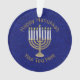 Un élégant ornement de vacances Chrismukkah fait un cadeau ou un souvenir réfléchi pour les couples et les familles qui mélangent leurs vacances pour créer des souvenirs uniques pour les années à venir. Un arrière - plan bleu profond de minuit presque brillant est la toile de fond de mon antique Menorah d'or avec des bougies blanches design. Créé exclusivement pour mon magasin sur ce site, ce ornement de Chanukah comprend des modèles de texte facile afin que vous puissiez ajouter un nom d'année ou de famille au texte de ton or Happy Hanoukka. D'un arbre de Noël à un bosquet d'Hanoukka, ajoutez cet ornement de Chrismukkah à votre unique exposition de vacances.