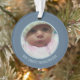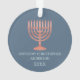 Personnalisez ce ornement photo à double face en bleu foncé avec un faux menorah à grains de bois comme une coutume mignonne My First Hanoukka ou Our First Hanoukka keepsaké. Ajoutez votre photo à l'avant où elle apparaîtra recadrée dans une image ronde avec un cadre bleu clair sur un arrière - plan bleu foncé. Personnalisez le texte voûté en bas si vous le souhaitez, puis éditez l'arrière de l'ornement Hanoukka rond où il y a un texte modèle pour votre nom et l'année si vous le souhaitez, le tout sous le dessin rustique en faux bois menorah. Créez un garde Hanoukka unique avec cette décoration à deux côtés.