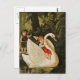 Vintage illustration of Gretel riding a large white swan. Hansel stands on the edge of the water watching his sister. Old-fashioned child's book illustration in public domain.