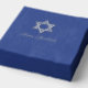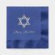 This lovely, elegant look paper napkin is shown in the navy color with silver foil stamping, shown with a Happy Hanukkah star print.