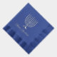 This lovely, elegant look paper napkin is shown in the navy color with silver foil stamping, shown with a Happy Hanukkah print.