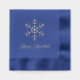 This lovely, elegant look paper napkin is shown in the navy color with silver foil stamping, shown with a Happy Hanukkah snowflake print.