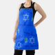 This apron has a Hanukkah design of dreidel, Star of David, and “Happy Hanukkah” on a blue background. Great for the season.