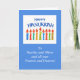 A bright and cheerful greeting card for Hanukkah, with a row of nine candles, from a handpainted paper collage by Judy Adamson. There is plenty of space on the front cover for your own message and the inside greeting is also customizable.