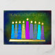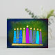 “Peace, love & light.” A playful, modern, artsy illustration of boho pattern candles in a menorah helps you usher in the holiday of Hanukkah. Assorted blue candles with colourful real gold foil patterns, real gold foil flames and menorah, overlay a rich deep green textured background. Faux copper diamond pattern foil on a green background for the reverse side. Feel the warmth and joy of the holiday season whenever you send this stunning, colourful, personalized Hanukkah flat greeting card. Matching envelopes, stickers, tote bags, wrapping paper, serving trays, home décor, and more are also available. Send this to someone special!