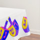 Add your name to this personalized Hanukkah tablecloth with a colourful Dreidels border pattern for one of a kind holiday decor. My original double Dreidels design in bold pinks, yellows, purples and blues spin around the border of this white holiday tablecloth. Jumbo text in bright blue is centred in the middle where you can add your name to "Hanukkah Blessings"... but you can erase the name option or remove it completely if you prefer. Set your Chanukah table on this colourful Dreidel tablecloth for an extra special touch. Take a peek in my shop to see all of my Colourful Dreidels Hanukkah party supplies.