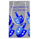 Eight of these cute little blue Dreidel gift bags and you are ready for Hanukkah gift giving. Add matching gift tags and maybe some ribbon for a coordinated look. Set on a background of faux silver sparkle, the pattern of blue and white Chanukah Dreidels wraps all the way around the bag. Finish off the presentation with your custom text - wording on the front and back of each Hanukkah bag can be customized individually in case you want to omit one side or change the other. This bright and bold gift bag is fun for both kids and adults.
