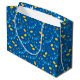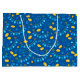 This fabulous gift bag would be perfect for any gift you are giving at Hanukkah. It's cool design with Stars of David, dreidels, and gelt in blues and gold is festive and fun! Get enough to wrap all your gifts.