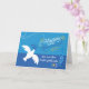Happy Hanukkah for a rabbi, paper greeting card with a digital illustration of a peace dove, flowers, Star of David, and handwritten style lettering. Customize the cover with your rabbi’s name. Art, image, and verse copyright © Shoaff Ballanger Studios, 2022.