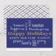 Collage of holiday greetings, Happy Holidays, Hanukkah, New Year, Goodwill, Laughter, Happiness, Namaste, Joy, Peace, Love, Thanksgiving, Family, & Giving. Customize with your name and year.