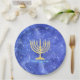 For your Chanukkah party. A glowing gold Hanukkah menorah and "Chag Chanukkah Sameach" (Happy Hanukkah) in glowing blue and white text superimposed on a blue and white fractal image reminiscent of snowflakes in a storm.