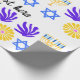 Celebrate Hanukkah with this vibrant wrapping paper featuring a beautifully illustrated menorah, a bold Star of David and Matisse-inspired organic shapes in lively, modern colours. The contemporary design brings a fresh artistic touch to traditional holiday symbols, making every gift feel joyful and unique. With dedicated space for your own custom text, you can personalise each wrap for family, friends or festive events.