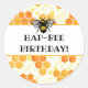 A bee over a honeycomb background with the saying "HapBEE Birthday"