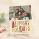 A fun retro holiday card to change things up this Christmas! Great for anyone looking to try something different, this design has a cool vintage vibe. Your family photo is displayed in a wide landscape format across the top half of the card. Below, “Happiest Holidays” is written in groovy typography, in a warm 70s colour palette of red, orange, mustard yellow, and green. Your family name and the year appear below in a clean sans-serif font. The soft cream background adds to the retro feel, and the back of the card features a playful pattern of hand-drawn Christmas baubles in the same colour scheme as the front. As part of Zazzle's budget selection, this sheet doesn't come in standard card sizes. To get this design on a standard card, you can find it in the collection or use the Zazzle Make Machine to transfer it onto your preferred product. Check out the collection for matching items, or browse our store for more unique Christmas card designs.