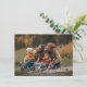This elegant yet modern holiday photo card features white calligraphy script over a full-bleed single, horizontal photo. The greeting on the front says "Happiest New Year". This design accommodates a single, horizontal photo on the front of the card. On the reverse side you will find a simple grey and white diagonal stripe pattern which can be removed or customized. You can also add another photo or text to the back by selecting "customize design further". All colors of this design are customizable, even the script.