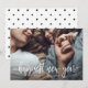 This modern New Year holiday photo card features the words "happiest new year" in a white script. Your photo is displayed behind. The back is a black and white pattern.