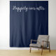 Customize this simple and modern wedding wall backdrop featuring elegant "happily ever after" white script typography on elegant and sophisticated dark blue. Perfect for your wedding photo booth, dance floor backdrop and welcome to your wedding photos.