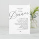 Mark the beginning of your forever with elegance using our contemporary beautiful modern black and white themed wedding elopement celebration invitation card, "Happily Ever After Dinner". Perfect for couples extending their joyous occasion, this invitation exudes sophistication with a hint of playfulness, setting the stage for a memorable event. Adorned with a timeless romantic script design theme, it adds a touch of refined charm to your festivities. Crafted by TeeshaDerrick, this invitation promises to beautifully capture your love story.