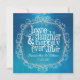 Beautiful water colour aqua blue with screened overlay picks up background colour of your choice.. Inticate flourish encircles invitation with love, laughter and happily ever after.