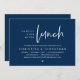 Mark the beginning of your forever with elegance using our contemporary-themed classy modern Navy Blue wedding elopement celebration invitation card, "Happily Ever After Lunch". Perfect for couples extending their joyous occasion, this invitation exudes sophistication with a hint of playfulness, setting the stage for a memorable event. Adorned with a timeless modern script design theme, it adds a touch of refined charm to your festivities. Crafted by TeeshaDerrick, this invitation promises to beautifully capture your love story.