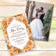 This modern orange rose floral wedding reception invitation, which includes your favourite wedding photo on the reverse side, is a true embodiment of romance and beauty that captures the essence of love and joy that surrounds your recent marriage. The vibrant orange roses take centre stage, symbolizing optimism, confidence, enthusiasm and warmth. The customizable typography allows you to personalize the invitation with your names, reception date, and all other essential information. Celebrate your love story like never before with this happily ever after party invitation.