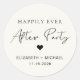 Chic light cream sticker for your wedding reception or celebration party invitations and party favours featuring "Happily Ever After Party" in a mix of simple typography and a modern script and your first names and reception date.