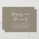 Elegantly announce your happily ever after with our modern warm taupe brown theme wedding elopement celebration invitation card, "Happily Ever After Party". Tailored for couples continuing their love story, this invitation strikes a perfect balance of sophistication and charm, setting the scene for an unforgettable event. Featuring a modern contemporary script design, it adds a touch of timeless grace to your special day. Designed by the talented TeeshaDerrick, this invitation is a stylish expression of your enduring love.
