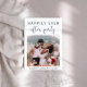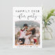 Elegant elopement or smaller wedding announcement and reception invitation. The front features your wedding day photo and "Happily Ever After Party" in a mix of simple typography and a pretty script with swashes. Under your photo you can add your first names and wedding date. On the reverse side you can personalize your message in more detail and add party or reception invitation details and your names in a signature-like script.