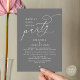 Elegantly announce your happily ever after with our modern beautiful dark grey themed wedding elopement celebration invitation card, "Happily Ever After Party". Tailored for couples continuing their love story, this invitation strikes a perfect balance of sophistication and charm, setting the scene for an unforgettable event. Featuring a modern contemporary script design, it adds a touch of timeless grace to your special day. Designed by the talented TeeshaDerrick, this invitation is a stylish expression of your enduring love.